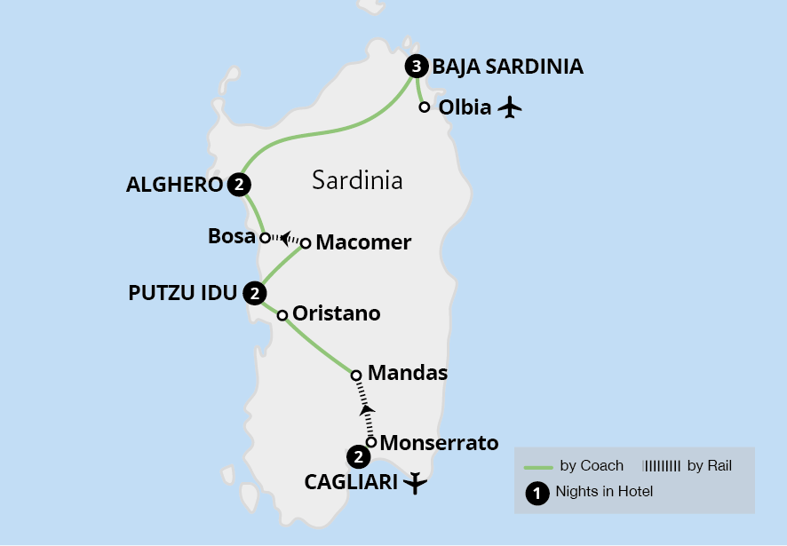 Sardinia is an island of fantastic wine, delicious seafood and cultural villages and cities, including Alghero,which is known as 'Little Barcelona' and has a unique Spanish flair. Look to the recent past with nostalgic journeys filled with incredible scenery on the Little Green Train, or delve deep into history that dates to 1,800 BC while exploring preserved Nuragic settlements. With beautiful views at every turn, Sardinia and its many allures beckon.