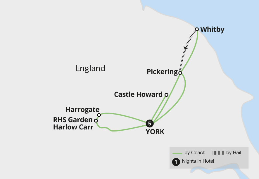 Enjoy a perfect blend of history, natural beauty and Yorkshire charm on this six-day getaway through one of England's most captivating regions. From the ancient city walls of York to the rolling landscapes of the North York Moors, explore the heritage of God's own county on a journey through some of its most iconic sights. Wander through...