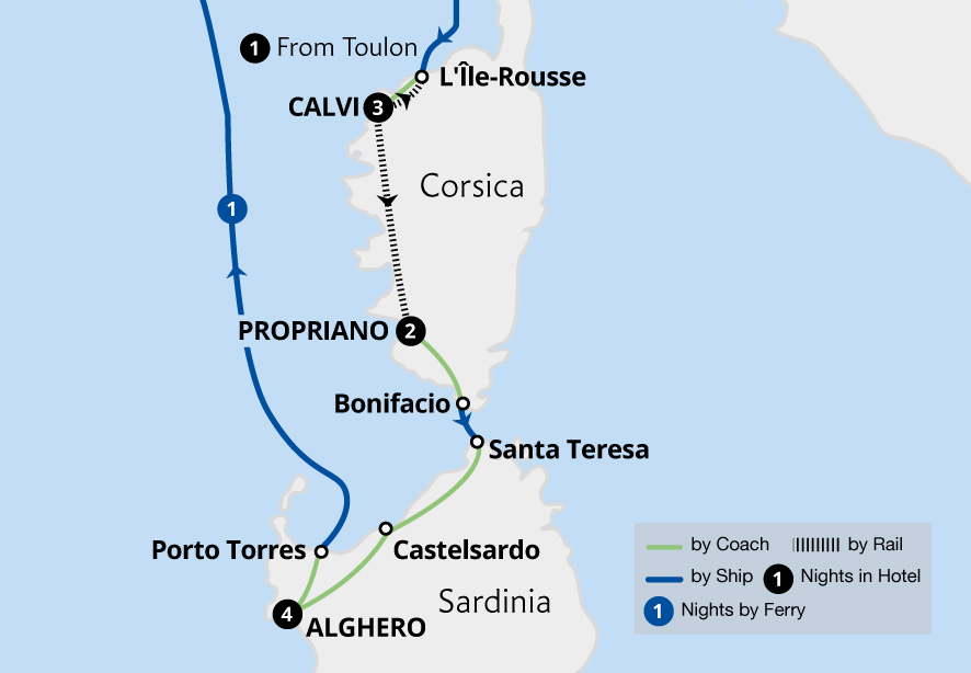 Uncover the laid-back island lifestyle on a fantastic tour of this 'forgotten corner of Europe'. Explore the glistening coast of unspoilt Corsica, a paradise of old-world French towns and hilltop villages, connected by charming train journeys through spectacular scenery. Indulge in the delicious cuisine of Sardinia, discover beautiful ...